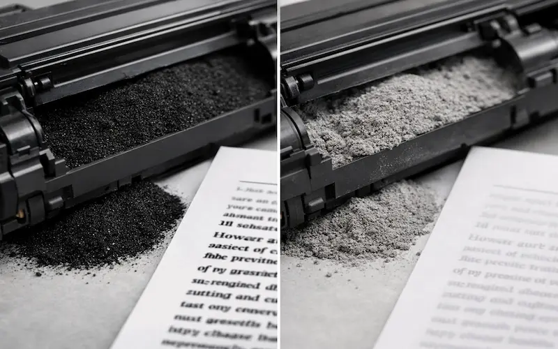 تونر لیزری پودری بسیار ریز و مهندسی شده است که با استفاده از بار الکتریکی و حرارت، روی کاغذ تثبیت میشود. برخلاف تصور عموم، سنگین یا سبک بودن تونر صرفاً به مقدار پودر موجود در کارتریج مربوط نیست، بلکه به چگالی ذرات، نوع رزین، درصد کربن، افزودنیهای کنترلی و رفتار تونر در فرآیند چاپ وابسته است.