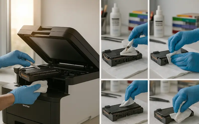 اگر گرفتگی خفیف باشد، تمیزکاری نرمافزاری چاپگر کاملاً کافی است و پیشنهاد اول ما همیشه همان است. تمیزکاری دستی بیشتر برای زمانی کاربرد دارد که: