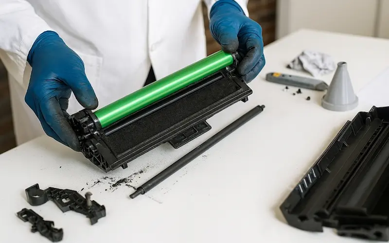 اگر کارتریج به‌ صورت سنتی و بدون تنظیم دقیق وزن و دانه‌ بندی تونر شارژ شود، آسیب به درام قطعی است.